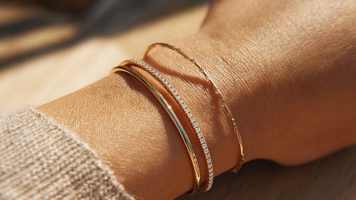 Modern bangles are crafted in precious metals like recycled gold or platinum, often accented with lab-grown diamonds for a refined sparkle that catches the light beautifully without overwhelming your style.